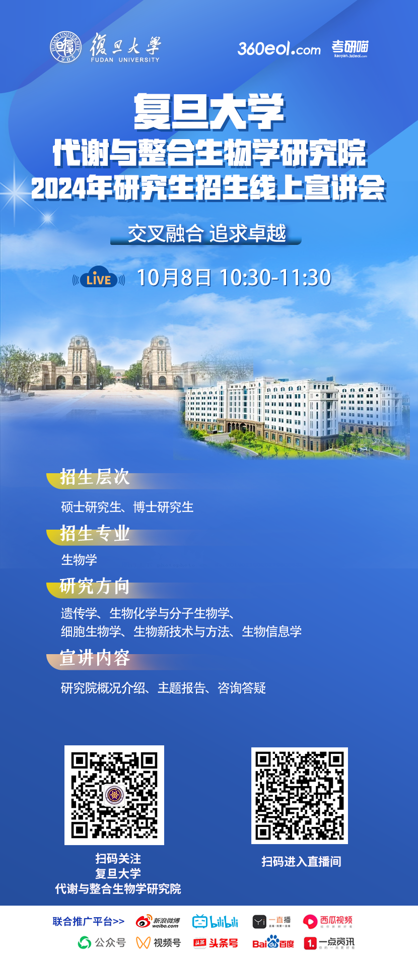 | 088 | 代谢与整合生物学研究院 | 10月8日 10:30-11:30 | 360教育在线 | |