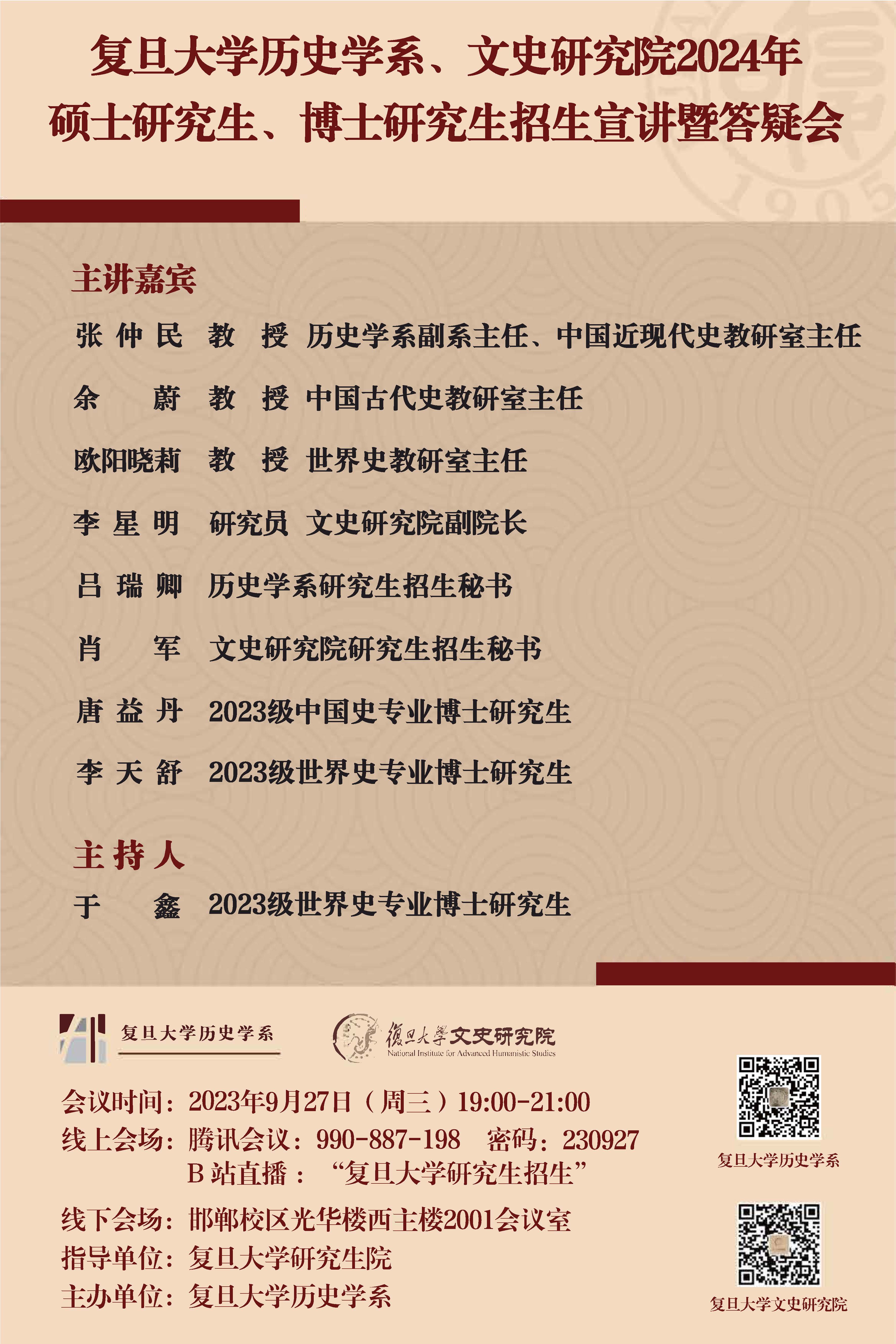 | 014 | 历史学系 | 9月27日 19:00-21:00 | 腾讯会议+B站:点点官网入口研究生招生 | |