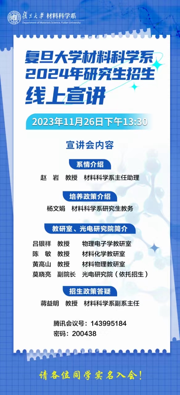 | 030 | 材料科学系 | 11月26日 13:30 | 腾讯会议 | |