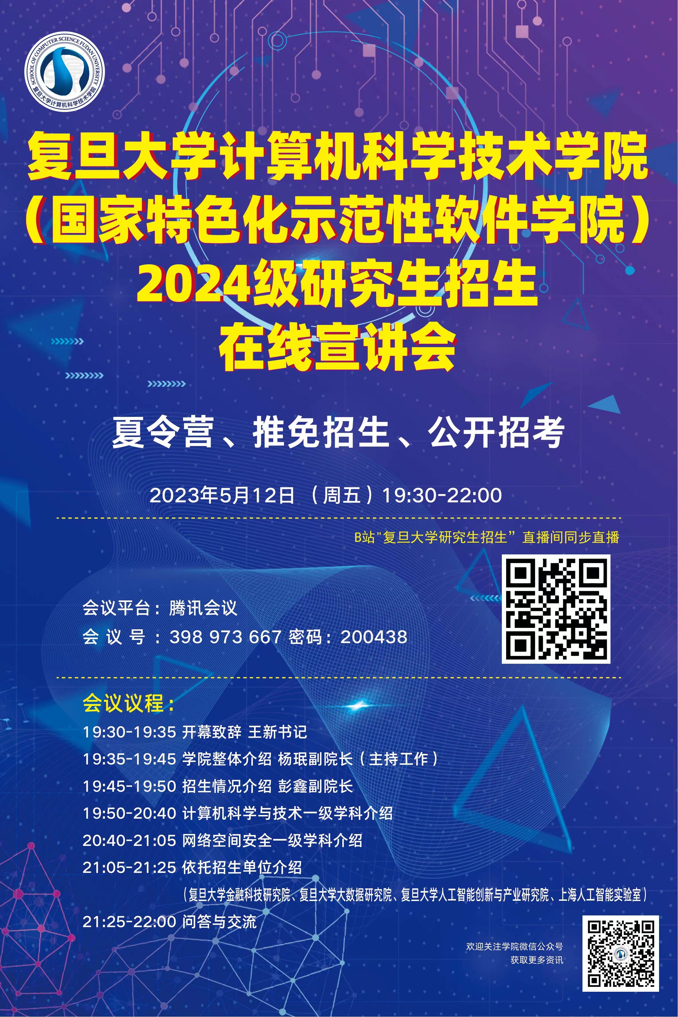 | 024 | 计算机科学技术学院 | 5月12日 | 腾讯会议+B站 | |