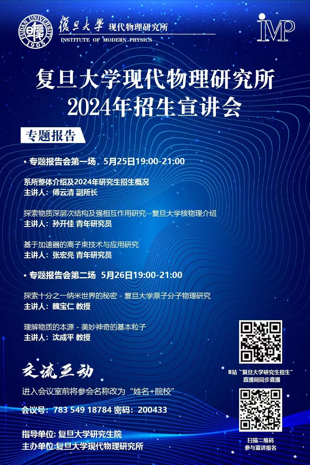 | 020 | 现代物理研究所 | 5月25日,5月26日 | 腾讯会议+B站 | |