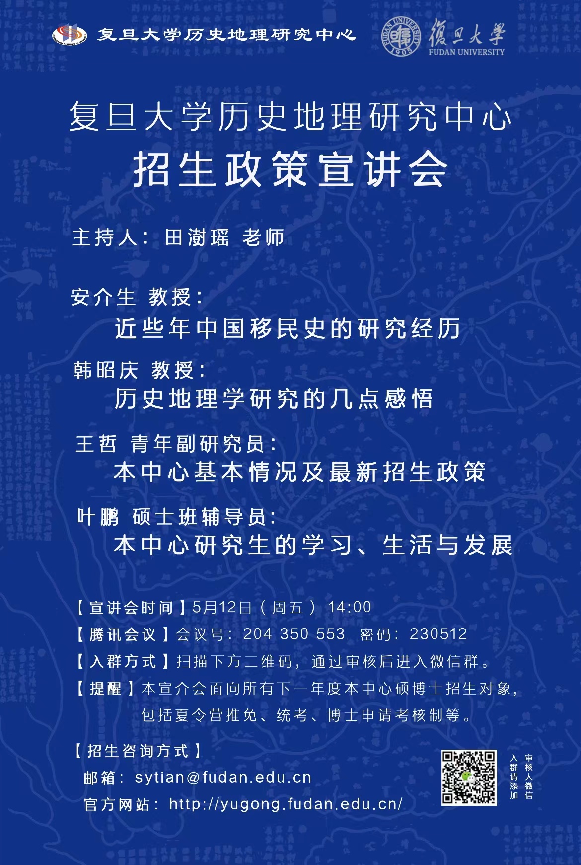 | 076 | 历史地理研究中心 | 5月12日 | 腾讯会议 | |