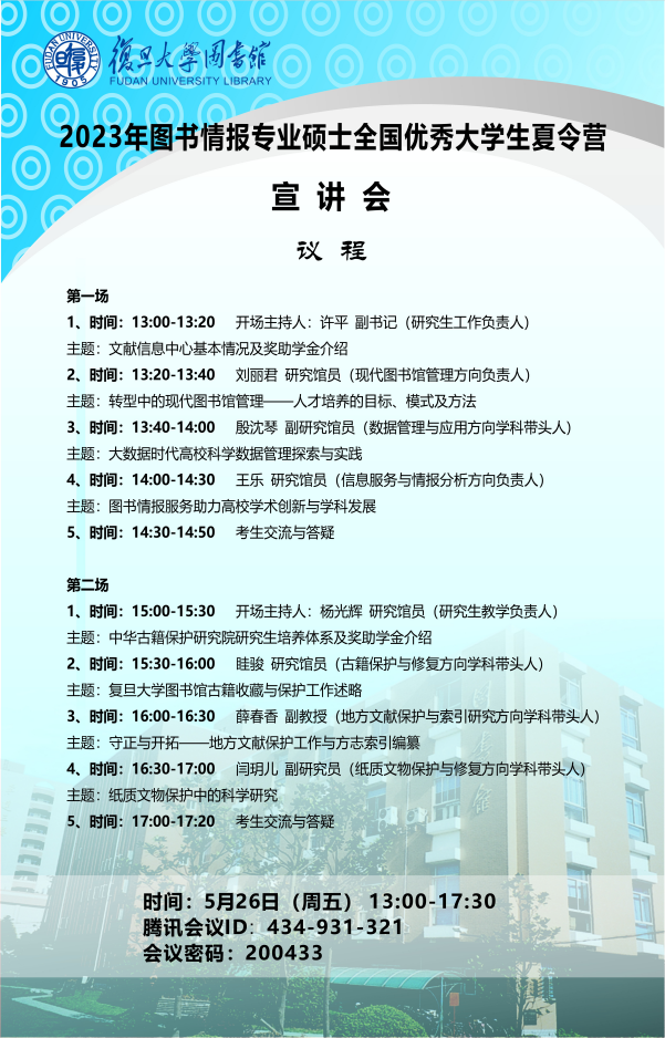 | 083 | 文献信息中心 | 5月26日 | 腾讯会议 | |