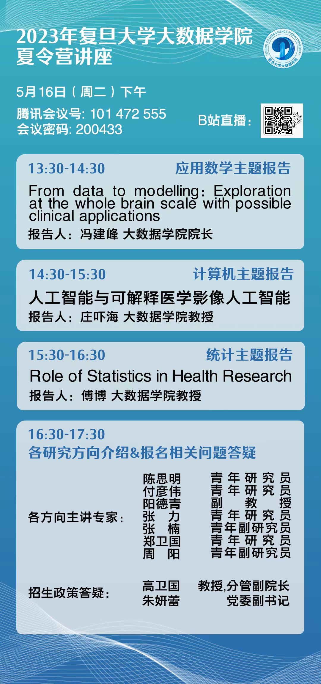 | 151 | 生物医学研究院 | 5月18日,5月20日,5月23日 | 腾讯会议 | https://ibs.fudan.edu.cn/9e/b8/c21031a499384/page.htm |