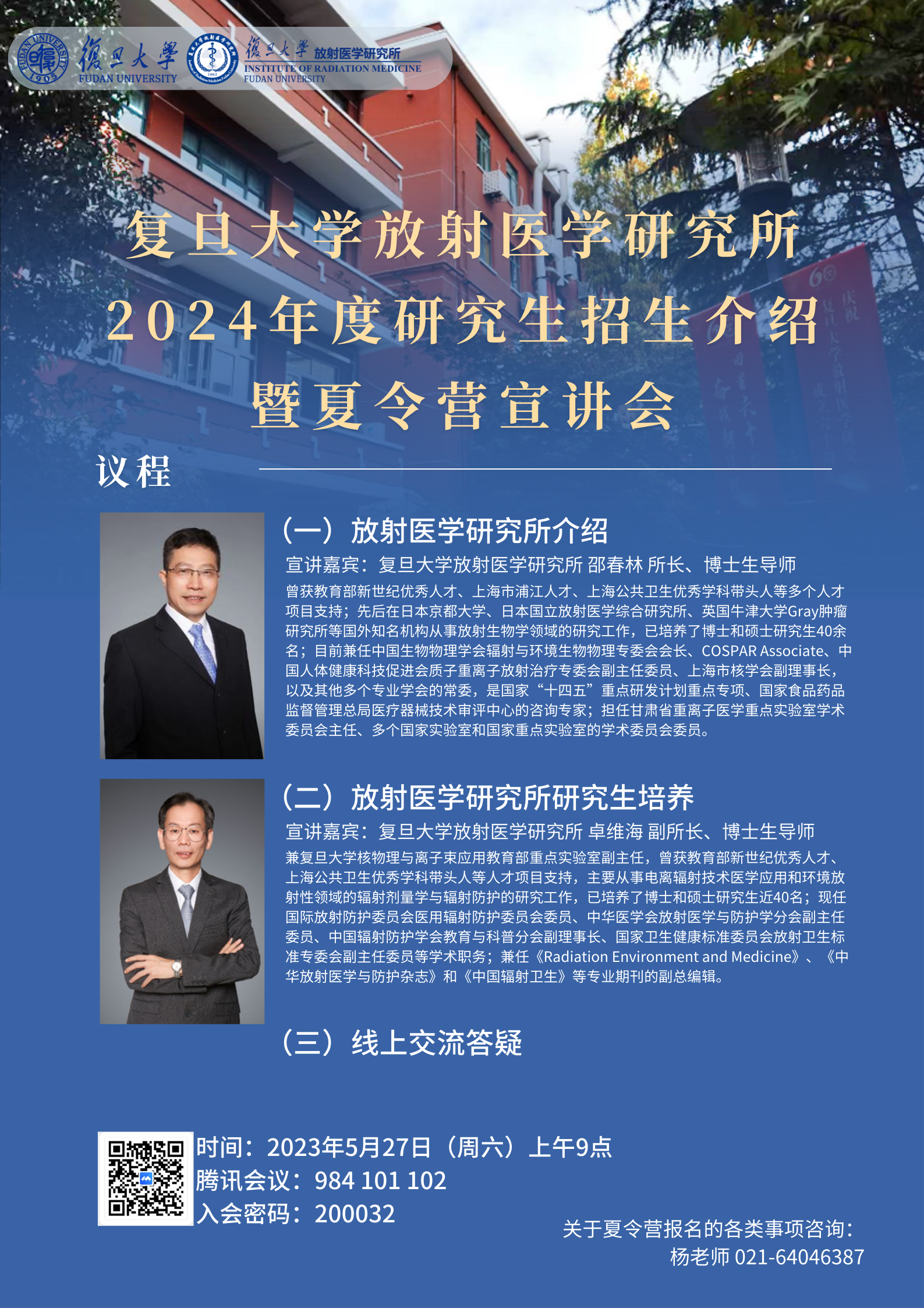 | 114 | 放射医学研究所 | 5月27日 | 腾讯会议 | |