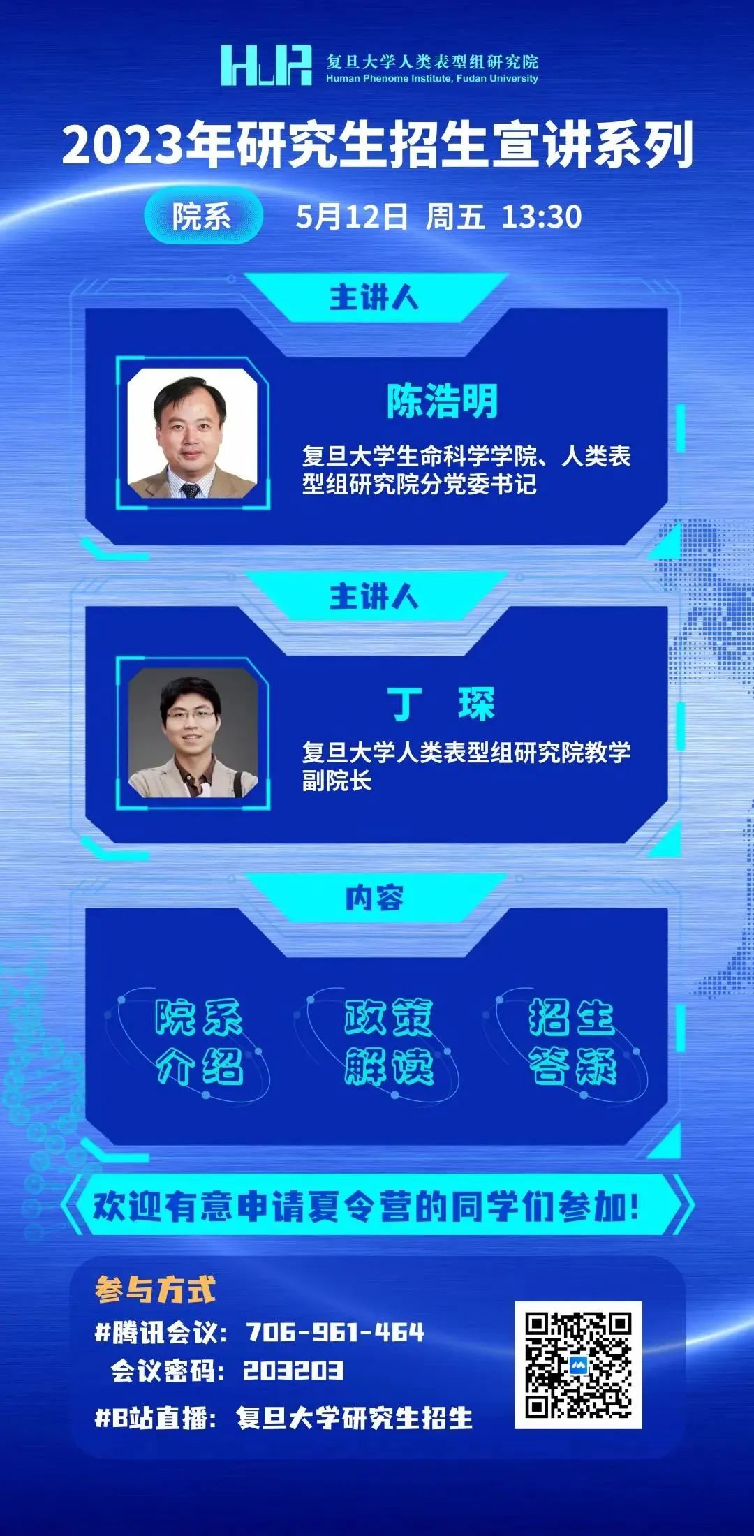 | 203 | 人类表型组研究院 | 5月12日 5月19日 5月21日 | 腾讯会议+B站 | |